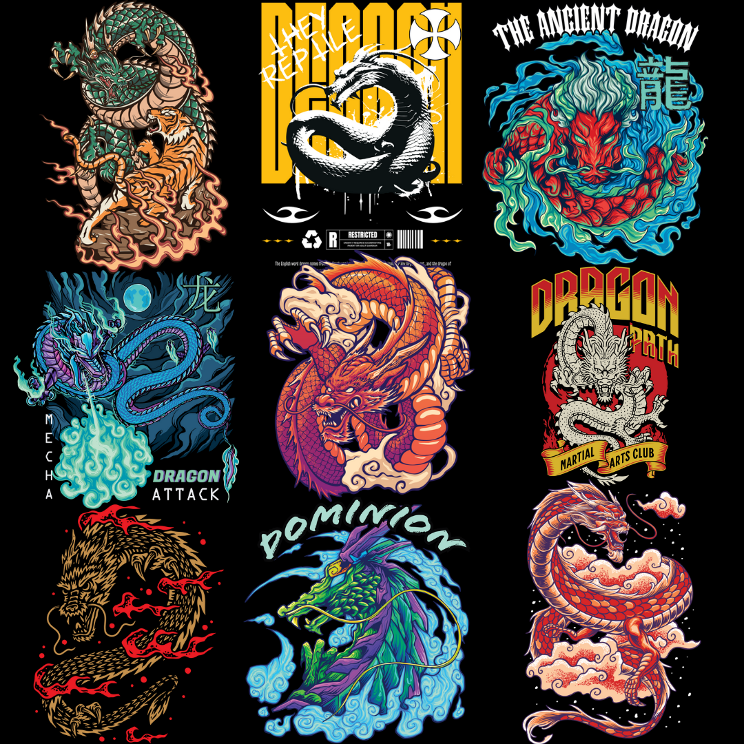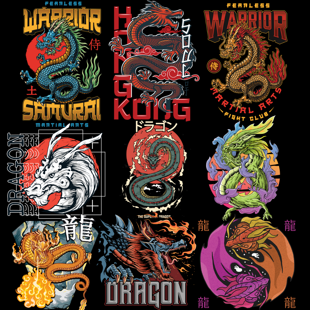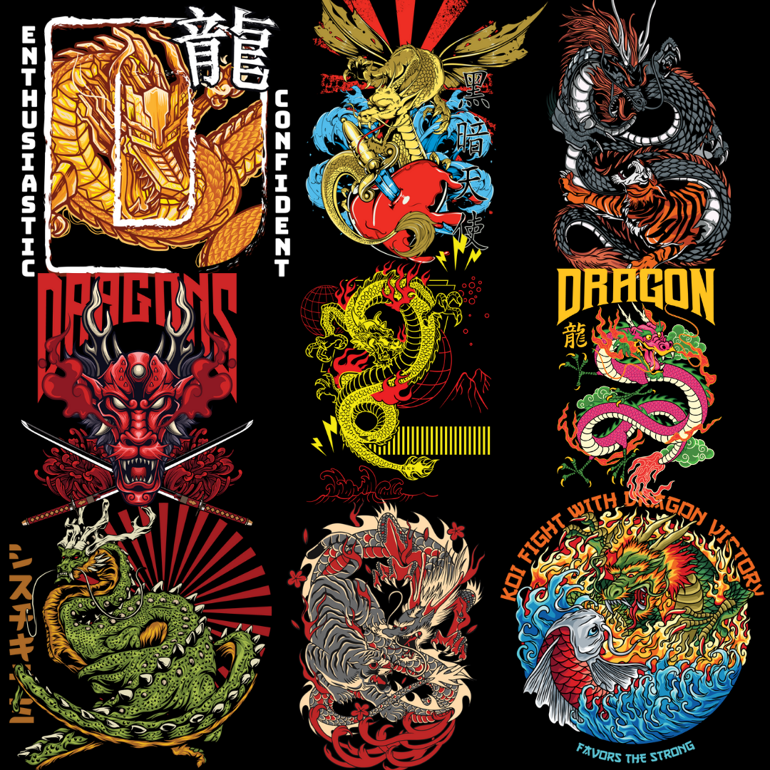 100+ Dragon Bundle, High Quality for T-shirt, Hoodie and Tote Bag, Chinese, Japanese, Dragon, Streetwear, Vector, Png, Creature, Prints
