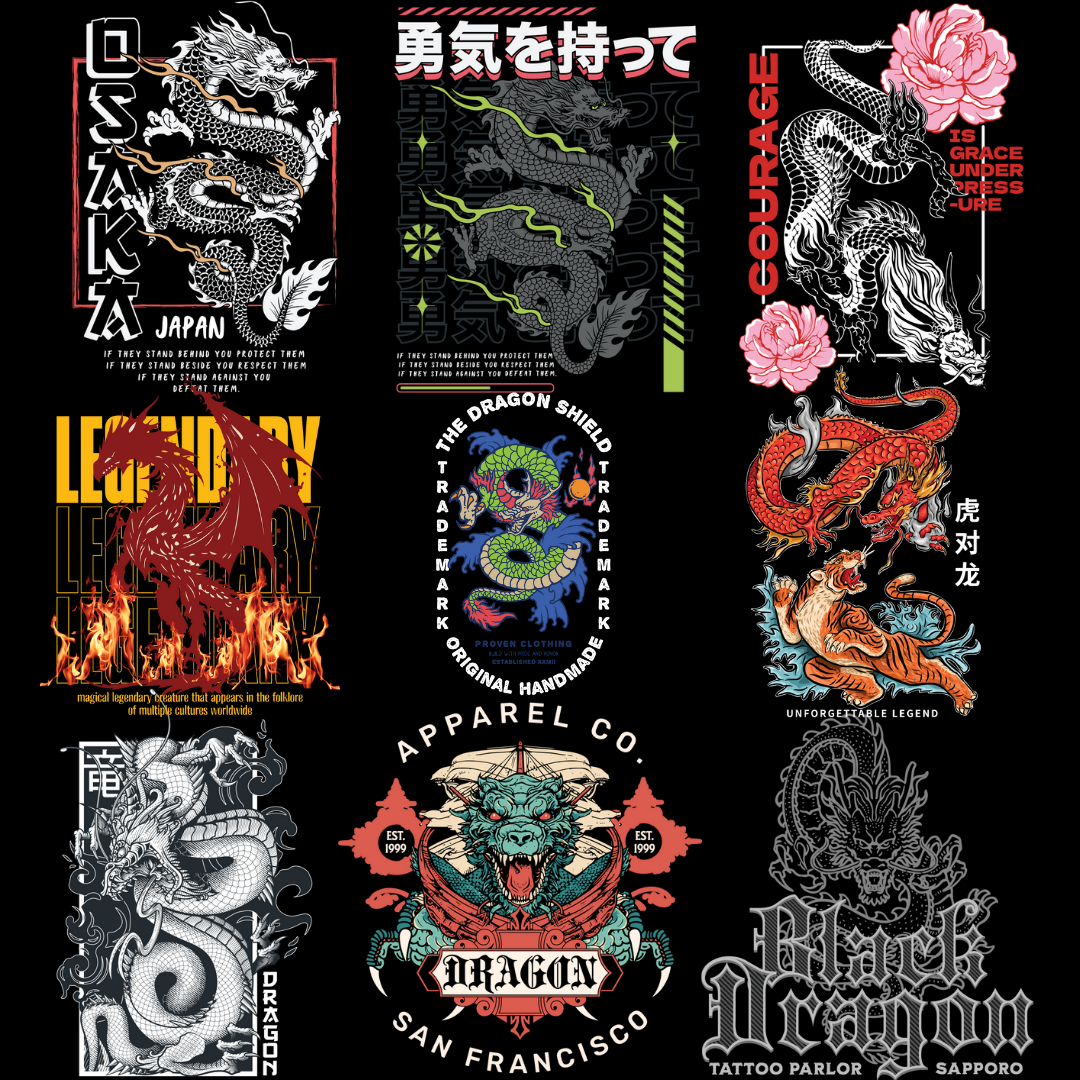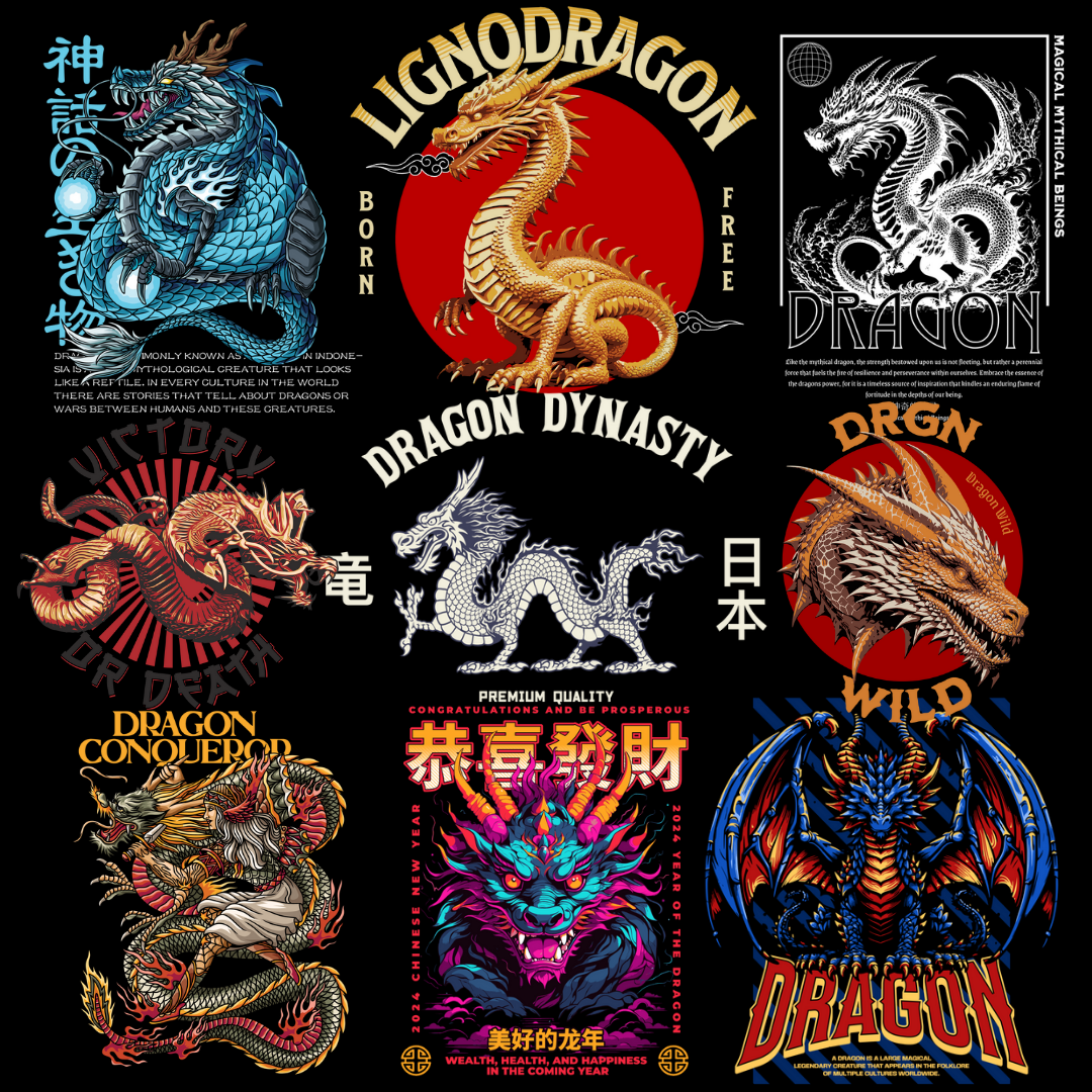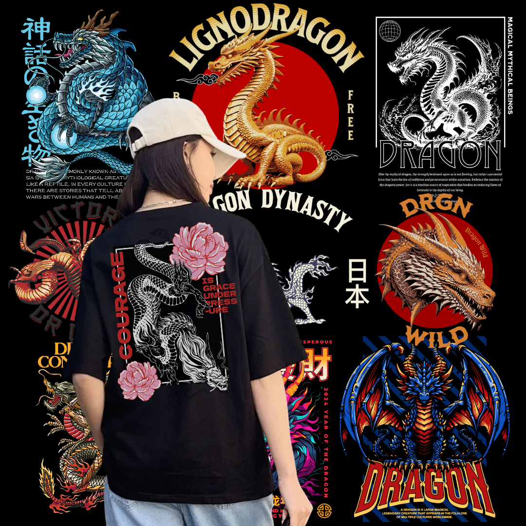 100+ Dragon Bundle, High Quality for T-shirt, Hoodie and Tote Bag, Chinese, Japanese, Dragon, Streetwear, Vector, Png, Creature, Prints