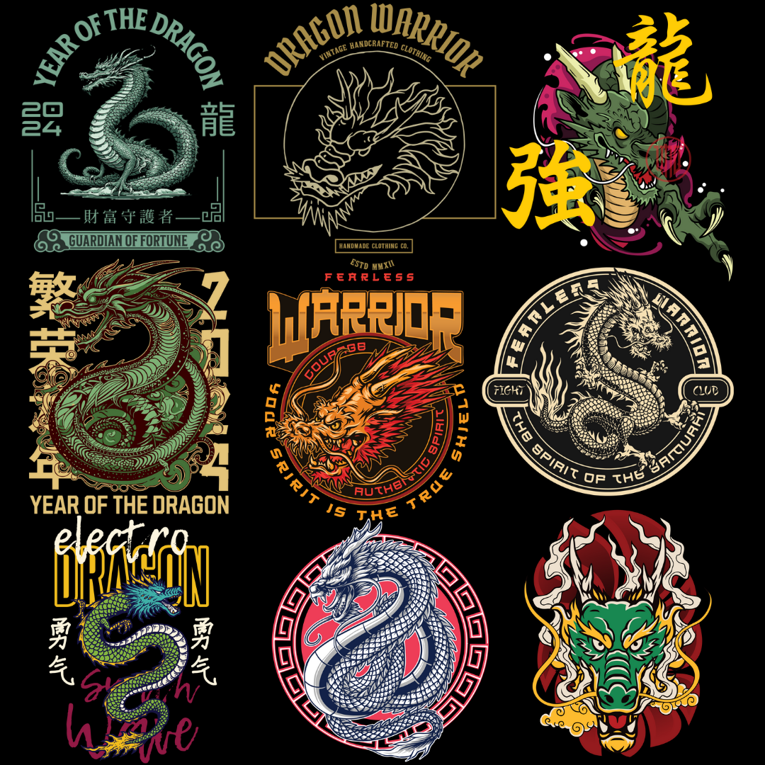 100+ Dragon Bundle, High Quality for Tshirt, Hoodie and Tote Bag, Chinese, Japanese, Vector, PNG, Digital Prints, DTF